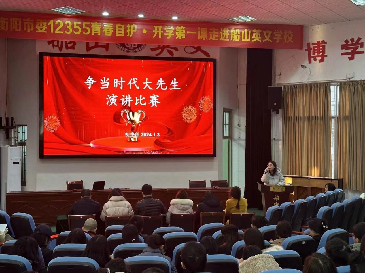 为进一步弘扬大教育家精神,加强师德师风建设,衡阳市第二十中学(船山英文学校)初中部于1月4日成功举办以“争做时代大先生”为主题的演讲比赛。