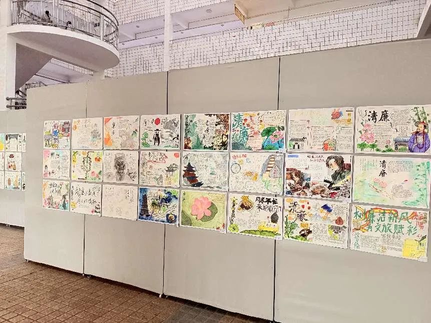 经由美术组精心评选后,脱颖而出的作品在校内文化长廊进行了为期一周的展览。展览期间,这些融合了创意、艺术与廉洁精神的手抄报作品,以其独特的魅力吸引了众多师生的目光,他们纷纷驻足观赏,细细品味作品背后的深刻内涵与衡阳文化的独特韵味。“在欣赏画作时,我不仅对衡阳的地方文化有了更加全面的认识,也对廉洁精神有了更深刻的理解,在往后的学习和生活中,我将继续秉持廉洁清正精神,努力成为新时代的好青年。”张婧同学如是说。