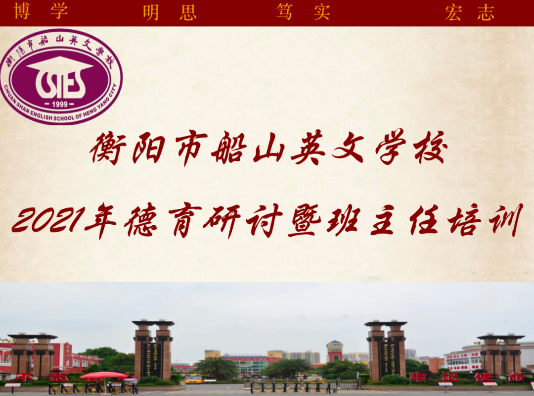 班主任是一个班集体各项工作的组织者,是学校教育工作的基石,是家校教育的助推剂!班主任应甘做学生成长的守护人,乐做学生发展的摆渡人,勇做学生优秀的引路人!为进一步夯实学校教育的基石,提升班主任的教育品质和专业修养,真正实现船山英文学校的名校战略构想,2021年8月29日下午,衡阳市船山英文学校在船英大讲堂举行了暑期教育工作研讨暨班主任培训会。欧立平校长、李良慧书记、曾云生副校长、王再平副校长,各学部校长及德育主任、全校班主任老师参加了培训活动。