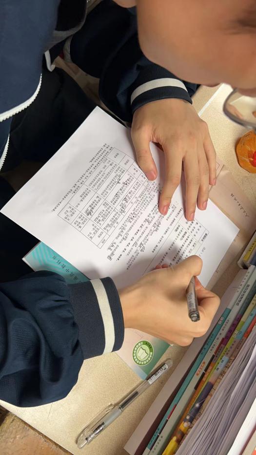 为确保教学效果,学校明确要求科科有学案,课课有学案。各教研组内老师分工合作,资源共享,统一编制并同步下发导学案,以方便学生养成课前预习的习惯,培养学生课前自主预习和思考的能力,提高课堂效率。现在学生都习惯了课前预习,原本一张张空白的学案,上课前就已写得密密麻麻。