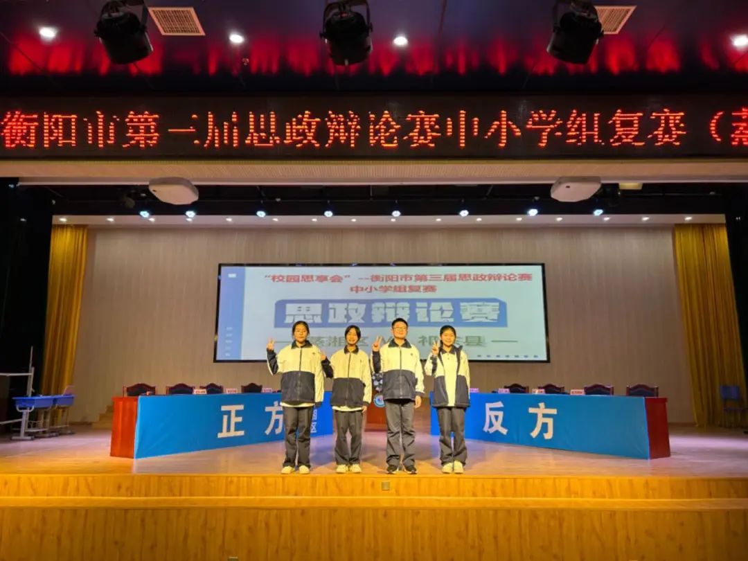 至此,“校园思享会”衡阳市第三届思政辩论赛中小学组复赛(蒸湘区vs祁东县)辩论赛活动圆满结束,正方船山英文学校辩论队获得本场比赛的胜利。这场辩论不仅是一次知识之战,更是一场能力的交锋,辩手们用扎实的知识储备、出色的口才和敏捷思维能力展现出船英学子朝气蓬勃、昂扬向上的精神风貌。期待他们在下一次赛场上更加卓越的表现,勇攀高峰,再创辉煌!