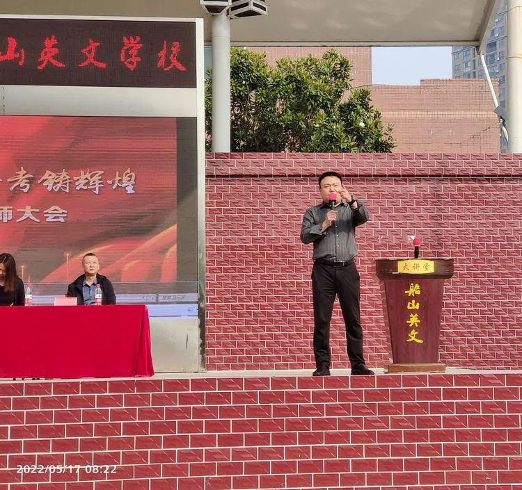 接下来,教师代表陶春凤老师向学生们提出了几点宝贵的建议。她希望同学们在最后的冲刺阶段要有雄鹰的视野和信心,要有孺子牛的勤奋和踏实,更要有蜗牛的从容和坚毅。