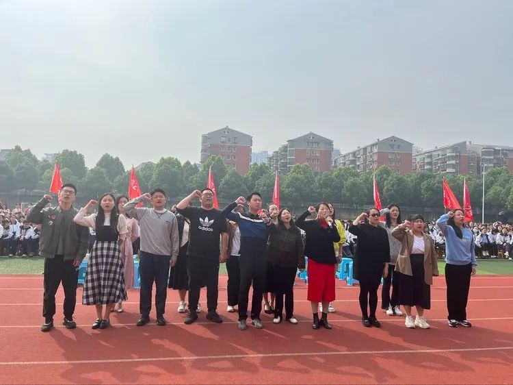 “甘将心血化时雨,润出桃花一片红。”接下来,全体班主任与生地老师满怀激情的铿锵誓言把誓师大会推向高潮。