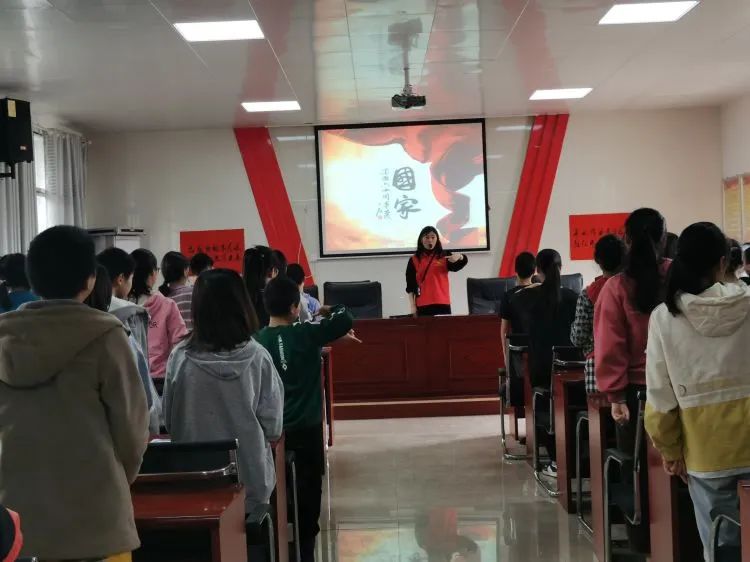梁琳老师提前为每一位学生复印好歌词,耐心教同学们学唱红色歌曲巜国家》。从节奏练习开始,逐句教唱,培养同学们的音乐兴趣。