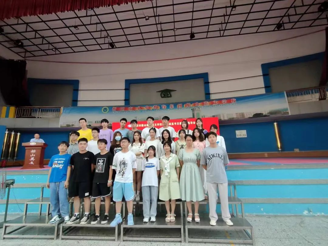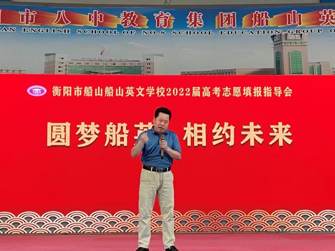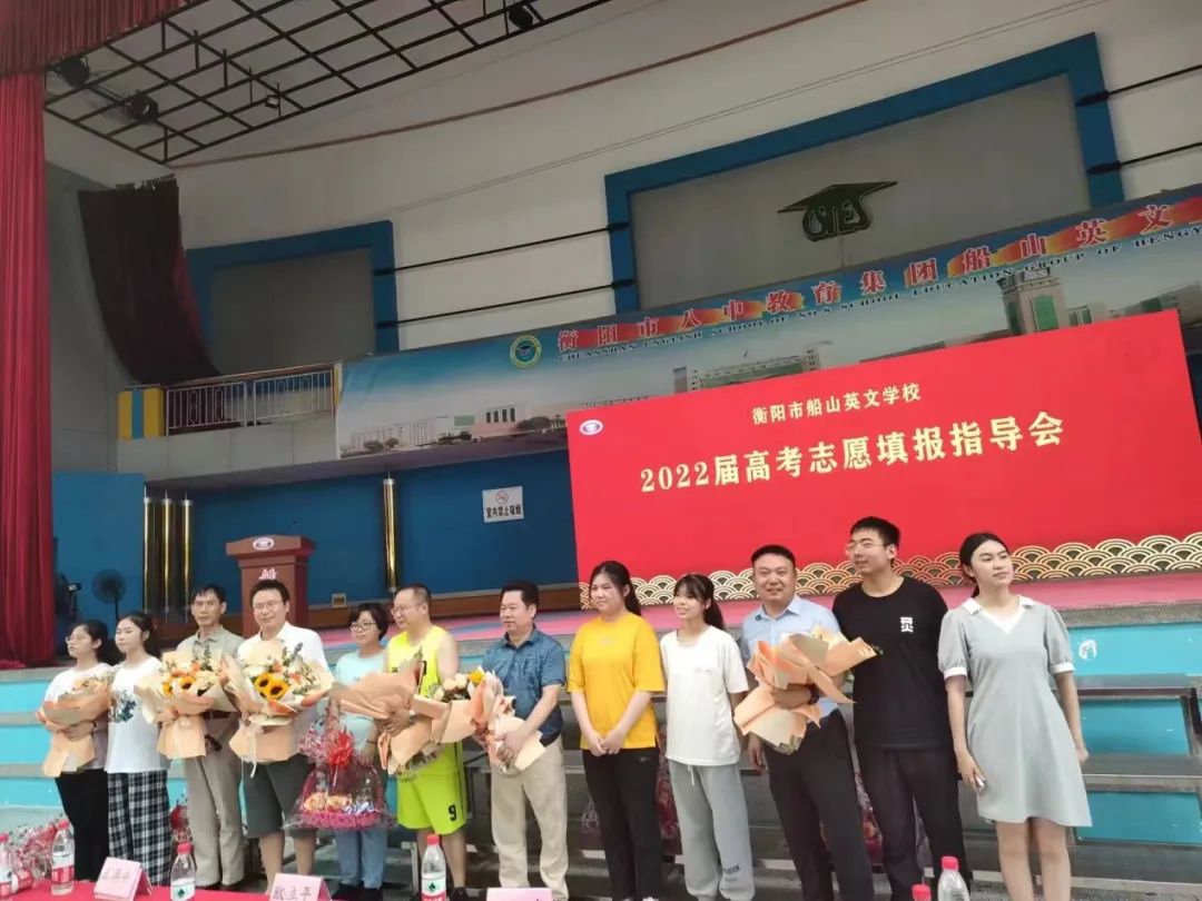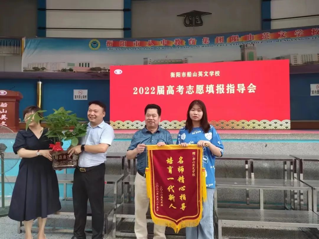 全校师生激动得欣喜相告、高兴得热泪盈眶…… 千余日子,不曾松懈;三年拼搏,终尝所愿。 6月26日上午9点,船山英文学校在校体育馆召开“志愿填报指导大会”,高中部全体教职工与学生及其家长,共同回顾奋斗历程,分享成功的喜悦,展望璀璨的未来。 如果世界有奇迹,那就是努力的另一个名字。 付出,用回报印证 每一个努力向上的人都值得敬佩,每一段努力付出的岁月都值得铭记。 当学校副校长曾云生一一念出上线学子的姓名时,他们过去所有的艰辛都化成了脸上灿烂的笑容。他们没有辜负自己,没有辜负青春,也没有辜负关心他们的家人、老师与朋友……他们用行动证明,每一份付出,都获得了回报。 誓言,用行动兑现 2018年,欧立平正式接任船山英文学校总校校长一职,他面对的是一个高考成绩不尽如人意的学校。 三年前,他向老师、学生、家长许下铮铮誓言:一定要把船山英文办成衡阳市北边最有名的学校。“为了留住孩子们,2019年我开了九次家长会,有些孩子是我带着他在校园里转了两个小时,谈了两个小时才留下来的。”欧校长如是说。 三年后,美丽的学校,欢声笑语的校园,奇迹般的高考成绩,良好的社会口碑……这些承诺都一一实现了。说起这三年的超常付出,欧校长满怀激情地说:“为了不辜负家长和孩子们的期望,全体老师每天坐班,给孩子们答疑解惑,悉心指导;引入智能平板辅助教学,提高孩子们的学习效率;邀请北大清华教授、学子来校讲座,鼓励孩子志存高远,努力攀登学习高峰;购买长郡网校全部课程,聘请退伍军人担任生活老师……只要为了孩子好,学校不计成本、想尽一切办法为孩子们创造最好的学习和成长环境,因为孩子的前途不是能用金钱衡量的,孩子有出息就是我们最自豪的事情!” “今天,我们可以自豪地说,你们当年的选择没有错,船山英文学校值得信赖!”欧校长十分欣慰地对家长和孩子们说。 感谢,用真情表达 “感谢学校管理团队、感谢所有高三老师、感谢学校的点滴关怀。”学生代表廖超、刘雨萱代表全体高三学子表达了感激之情,他们祝福学子们与学校一道,在未来的日子里“会当凌绝顶,一览众山小”“长风破浪会有时,直挂云帆济沧海”。 “三年来,我看到了孩子们的成长,也见证了船山英文学校的发展,感谢学校,感谢全体教师!”学生家长代表回顾了自己三年与孩子共同跋涉的征途,对学校卓有成效的付出表示由衷的感谢。 为了表示对母校和老师的这份感谢,许多学生及家长为学校送来锦旗、牌匾、鲜花……将千言万语凝聚在这一份份特别的礼物中。 “铭记母校,永念师恩。”这是一位同学在赠给母校牌匾上留下的话语,深情地表达了孩子们对学校,对老师深深的情,浓浓的爱。