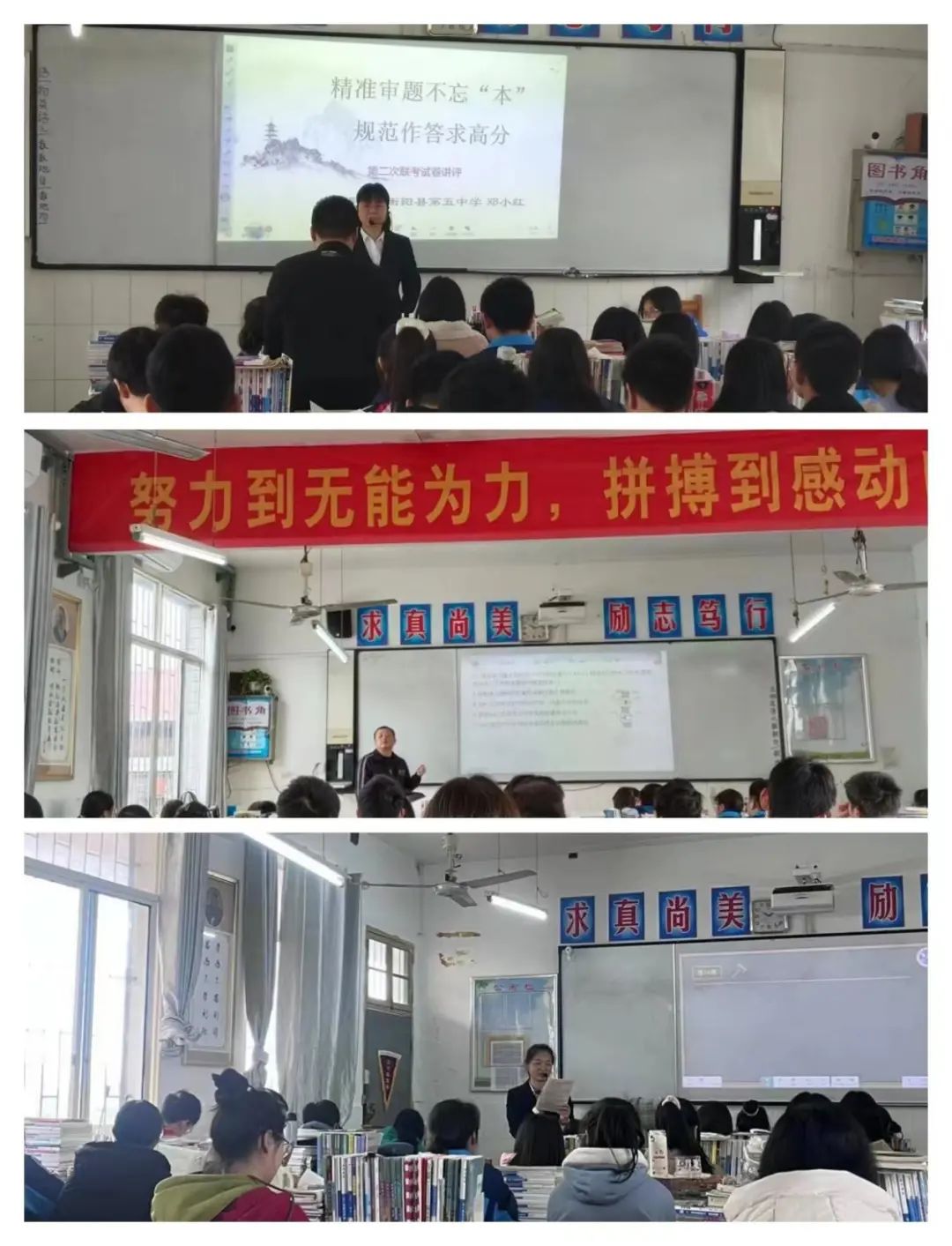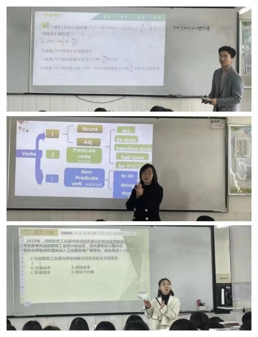 分科授课 同展讲评风采 围绕衡阳市第二次联考试题,两校进行了试卷讲评教研课展示。在衡阳县五中教研组的陪同下,两校高三教师分科听取了教研课。教研课上,授课老师备课充分,方法灵活,各展教学风采。其中,船山英文学校蔡曼、唐健、李素雅三位老师分别展示了英语、数学、地理教研课。
