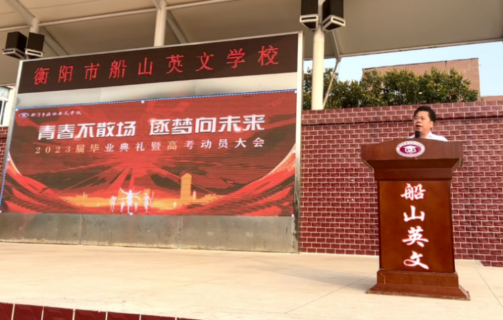 毕业惜离别,载梦启新程。2023年6月4日上午,衡阳市船山英文学校举行盛大的2023届毕业典礼暨高考动员大会。党总支书记欧立平、党建指导员李良慧、校长曾云生等校领导、高三全体师生和家长代表们参与了此次盛会。