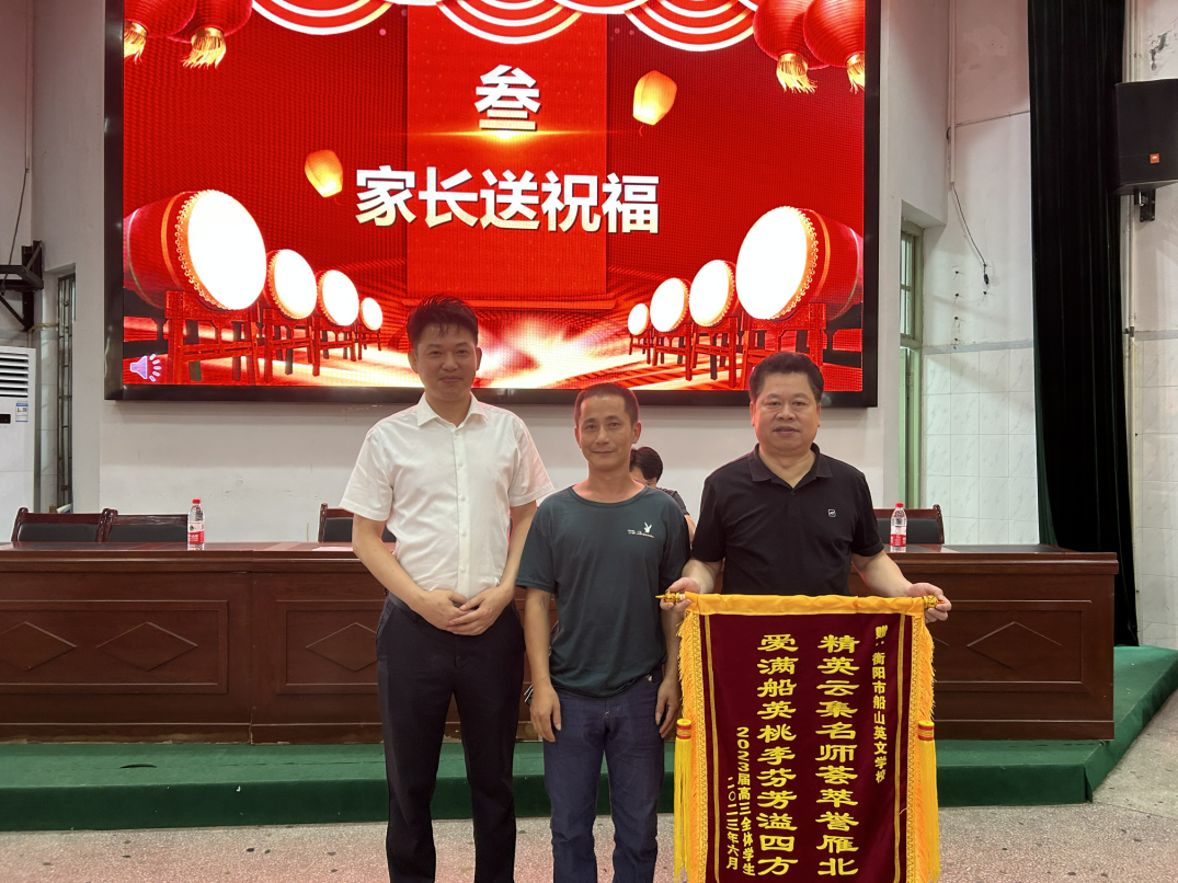 随后,表家长代表和毕业学子们为校领导和高三教师献上鲜花和锦旗,以表达对校领导们的殷切期盼、高三教师们的辛勤付出的感激之情。现场气氛欢快而热烈,大家的脸上都洋溢着幸福的笑容。