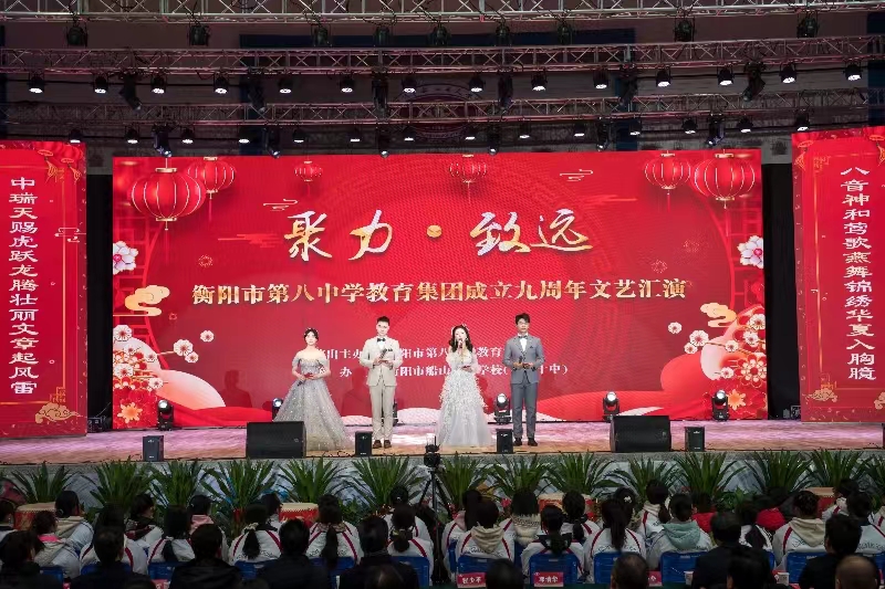 本次八中教育集团成立九周年文艺汇演由衡阳市第二十中(船山英文学校)具体承办。汇演规模盛大,全程直播,线上观众达3.5万人。