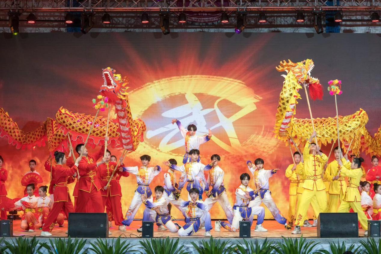 在全场观众的热切期盼中,宁书记郑重宣布:文艺汇演正式开始。东道主衡阳市船山英文学校第一个出场,以气势磅礴的开场节目龙狮舞《神韵中华》展现出中华民族的威严与气势;温婉柔情的古典舞《唐印》诠释了力与美的双重结合;文化底蕴深厚的戏曲联唱展现了中华文化的博大精深;感人至深的群舞《我的妈妈叫桂梅》引起了在场师生对教育的共鸣;引人入胜的情景剧《追随伟人,壮我成章》带领观众穿越历史时空……师生们在舞台上用灵动的音符奏响动听的旋律,用飒爽的舞姿彰显翩翩风采,用细腻的表演唤起观众内心深处的共鸣。在场观众为一场场精彩纷呈的视听盛宴高声喝彩。