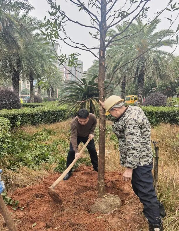 据悉,除种植银杏、樱花、金丝楠木、罗汉松、女贞等景观树木外,学校还计划带领学生在校内栽种柚子苗、无花果等果树,旨在为四季如画的校园增添一抹果香。这些植物既是孩子们日常观察的自然教材,也将成为记录他们成长的时光坐标。