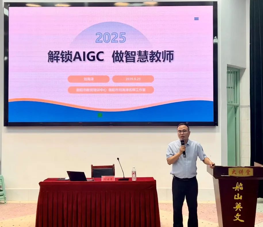 衡阳市信息技术与教育教学融合学科首席专家刘海涛以《解锁AIGC,做智慧教师》为题,带来了一场别开生面的讲座。刘老师聚焦人工智能与教育发展的紧密联系,深入解读AIGC(人工智能生成内容)的基本概念,并详细剖析其典型应用场景。通过系统讲解,刘老师为参会教师提供了借助AIGC解锁教学新路径的方法,助力其更高效地推动人工智能与教育教学的深度融合。