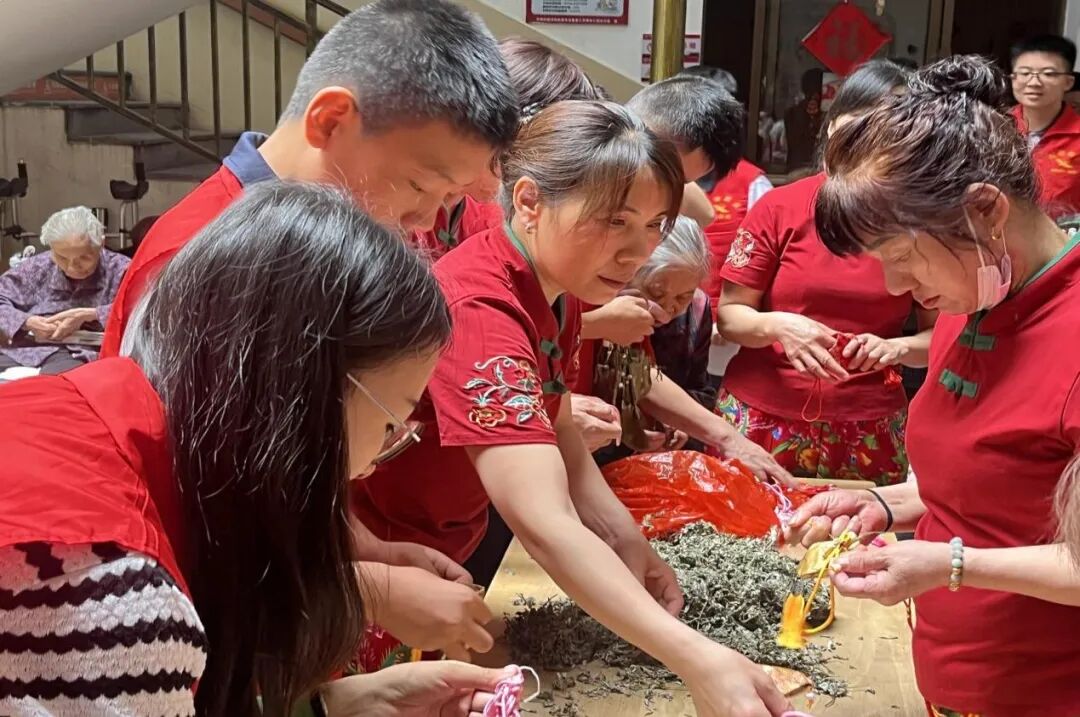 表演结束后,同学们化身讲解员,向爷爷奶奶们细致介绍起艾叶香囊的功效。随后,在同学们的耐心协助下,老人们兴致勃勃地动手装填香囊。大家你一言我一语,交流着对传统节日的回忆与期待。香囊的淡淡药香弥漫开来,承载着大家对节日的美好祝愿,更让尊老、敬老、爱老的传统美德在互动中得以彰显。