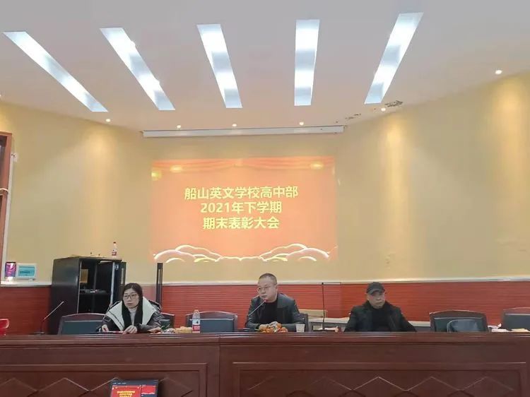 2022年1月21日下午,船英音乐教室灯火通明,高中部全体教职工围坐一起,欢聚一堂,举行了一场别开生面的期末总结暨表彰大会。