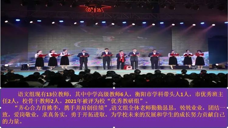 总结暨表彰大会分四个议程进行。 高中部校长莫国冰对学部一年来的工作进行了总结,肯定了老师们取得的成绩,指出了老师们在工作中存在的不足,同时对老师们的工作提出了“五讲”要求:讲政治、讲情怀、讲质量、讲学习、讲创新。 高中部教务处主任许秋莲宣读了2021年度教育教学工作优秀者名单,总校曾云生副校长、学部领导给获奖教师进行了颁奖。 从左往右,依次为高中部校长莫国冰老师、总校副校长曾云生老师、历史教研组长王美艳老师 从左往右,依次为杨洁老师、胡爱妮老师、李辉荣老师 从左往右,依次为彭沁老师、熊峰老师 教师业务水平考试特等奖获奖老师合影 教师业务水平考试一等奖获奖老师合影 教师业务水平考试二等奖获奖老师合影 语文教研组 英语教研组 历史教研组 音乐教研组 体育教研组 优秀教研组组长合影 获奖青年教师代表陈望远老师、蔡曼老师分享了自己近年来快速成长的经历和感受,她们都表示:一定会肩负教书育人责任,不断学习,让自己迅速成长为一名优秀的教师。 陈望远老师分享成长经历及感受 蔡曼老师分享成长经历及感受 优秀教研组代表——英语教研组组长胡爱妮老师、历史教研组组长王美艳老师分别汇报了一年来教研组活动的开展情况及取得的成绩,并分享了自己管理教研团队所采取的具体举措。 英语教研组长胡爱妮发言 英语教研组活动 历史教研组活动 总校曾云生副校长从学部的管理、学生的精神面貌、教师的团结协作意识及所取得的成绩四个方面对高中部进行了总结,同时也对老师们提出了殷切期望:作为教师,不能让自己停止学习的脚步,而应坚持学习、不断提升自我,静心做好教育。 总结过去是为了更好地展望未来。在总校欧立平校长、李良慧书记以及各位校领导的带领下,在全校各部门的大力支持下,在全体教职工的辛勤耕耘和默默坚守下,高中部2021年的工作画上了圆满句号;相信在大家的凝心聚力和踔厉奋发下,高中部2022的工作会越来越好,船英的明天会越来越辉煌! 提前祝大家虎年快乐、阖家幸福,万事顺意!