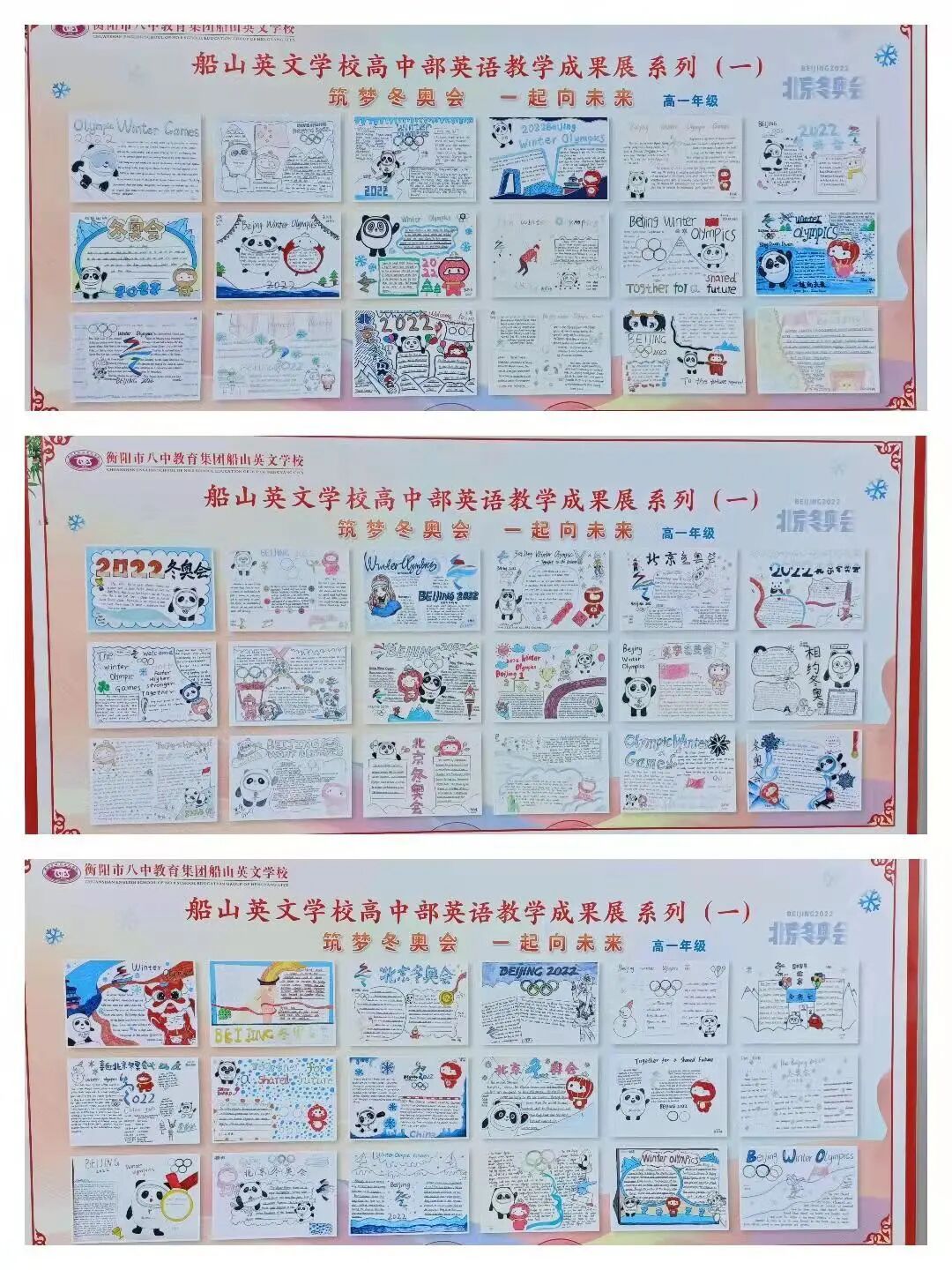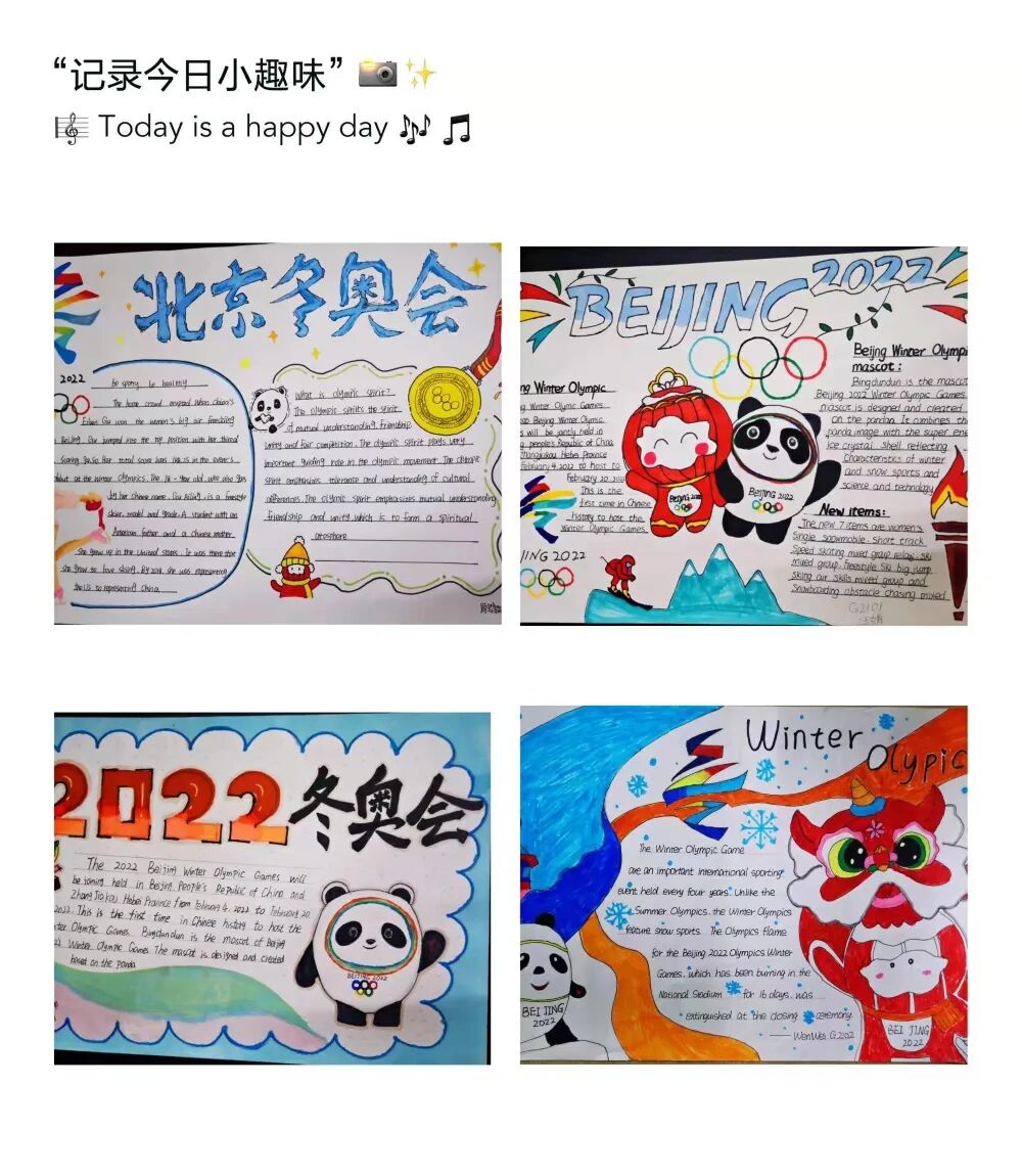 高一年级以“筑梦冬奥会,一起向未来”为主题,用富有创意的设计展示了北京冬奥最具标志性的元素和难忘的瞬间。