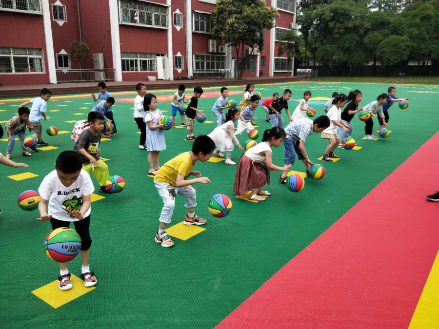 哇哦!我们学会拍球了,看我们是不是特别厉害,跟着老师的节奏拍起来,我们就是棒棒的“篮球小明星”。
