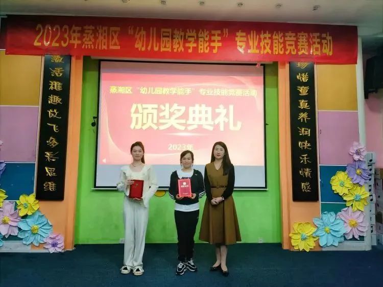 基本技能竞赛环节,选手们以创意的手工作品、感人肺腑的成长故事、童趣十足的儿童舞创编充分展示了幼教人朝气蓬勃的青春活力、积极向上的精神风貌和扎实过硬的专业素养;现场教学竞赛环节,选手们以亲切自然的教态、富有感染力的语言、新颖的教学设计、灵活多样的教学方法、充满童趣的活动,营造了“乐中学、趣中探”的活动氛围,体现了以人为本,探索激趣的教学理念。 经过激烈角逐,船英幼儿园刘思凡老师凭借扎实的专业素养、娴熟动听的弹唱、晏妙柔美的舞姿、大方得体的教学仪态、灵活多变的教学形式、有条不紊地临场反思、饱满的精神面貌脱颖而出,以综合排名第一的成绩获得“特等奖”的殊荣,并被现场授予"蒸湘区幼儿园教学能手"称号。