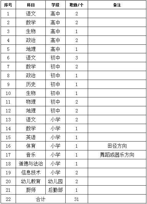为落实市委、市政府把我校办成省级品牌学校的指示精神,全面提高我校教育教学质量,满足下学期工作需求,特制定本方案。 一、招聘工作组 1.招聘领导组 组 长:欧立平 副组长:李良慧 成 员:贺学明、尹春、彭青、李周利、曾云生、王再平 2.教师招聘工作组 组长:曾云生 成员:刘彬、任重、何小兵、莫国冰、李晶、招聘专员、各招聘学科评委老师 3.纪检监察组 组长:彭青 成员:阳倩 二、招聘原则 公开、平等、竞争、择优。 三、招聘计划 四、教师招聘程序 招聘程序按照资料初审、遴选、笔试、面试、评议、公示、体检(自行体检)、聘用八个环节进行。 五、评委安排 招聘组长牵头,组织相关领导并临时抽调相关专业评委参与笔试和面试评选工作。 六、工作要求 公平公正,严格把关,择优聘用,保证质量。 七、招聘条件 1.热爱党,热爱祖国,热爱社会主义,忠诚党的教育事业,遵纪守法,品行良好,身心健康。 2.应聘教师岗位需“五证”俱全:国家权威机构颁发的学历证、教师资格证、普通话等级证、计算机等级证、教师职称资格证。其中,学历要求初高中不低于本科文凭,其他不低于专科文凭,普通话水平要求达二乙(语文、英语为二甲)以上,爱岗敬业,乐于奉献,有团队合作精神;专业对口,能胜任班主任工作者优先。(关于学历方面的要求,特别优秀者可视情况酌情放宽条件限制)。 3.具备报考岗位所要求的学历、毕业专业、相应层次教师资格证。 4.有下列情形之一的人员,不得报名: (1)涉嫌违法犯罪正在接受司法调查尚未作出结论的人员; (2)尚未解除党纪、政纪处分或正在接受纪律审查的人员。 八、注意事项 1.教师在面试前需向学校办公室提供“五证”原件及出示个人无犯罪记录证明。 2.招聘学校负责对报考人员的报考条件进行资格审查,审查贯穿考试聘用工作全过程。 3.凡在考试聘用过程中提供虚假材料的,一经查实,即取消考试聘用资格。 九、报名联系电话 1.即日起开始报名 2.联系电话: 座 机:0734—8801888 刘老师:13875734674 毛老师:13342541031 十、招聘地点及时间 1.时间:2021年8月(具体时间以电话通知为准) 2.地点:衡阳市船山英文学校行政楼 3.对象:具有相应资质的、符合相关条件的应往届毕业生。