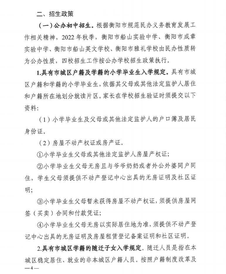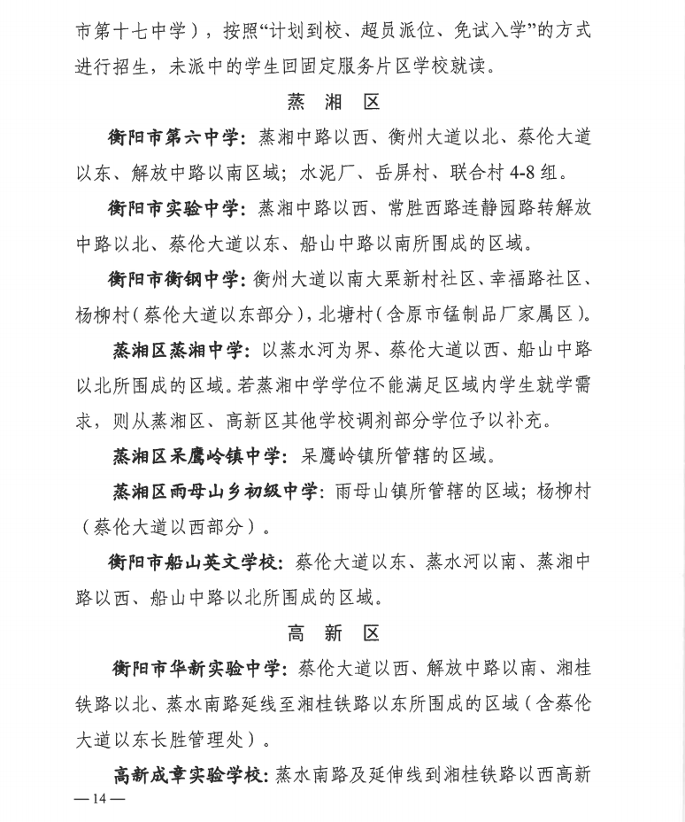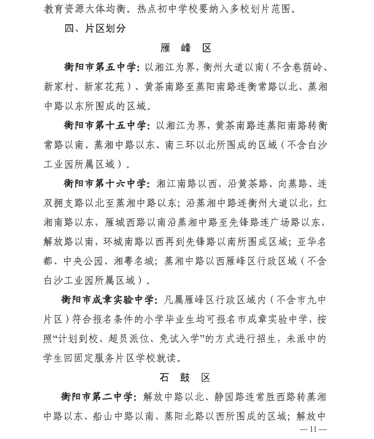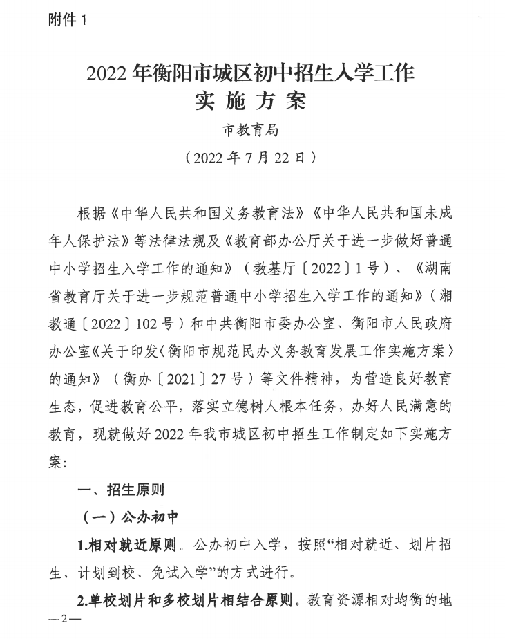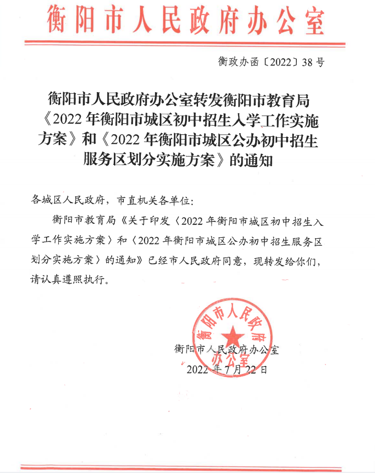 权威发布!2022年衡阳市城区初中招生入学和划片方案公布